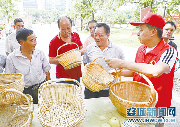 活动现场,一只只做工精致的竹菜篮吸引了众多市民的目光。据介绍,这些竹菜篮都是莘畈乡的村民手工编制的,举办此次活动不仅能帮助村民销售,还能宣传助力垃圾分类工作,让菜篮子买菜成为新时尚。