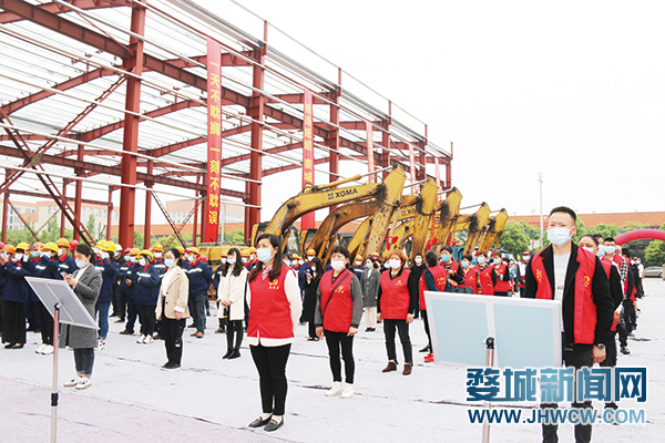 随着项目开工指令的下达,百余人共同见证了浙江智造重工起重机项目动工。