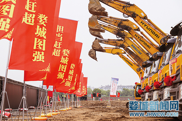 昨日上午,位于婺城区临江工业区的浙江智造重工起重机项目分会场花团锦簇,现场洋溢着热烈喜庆的气氛,整齐排列在会场一侧的施工器械格外醒目。