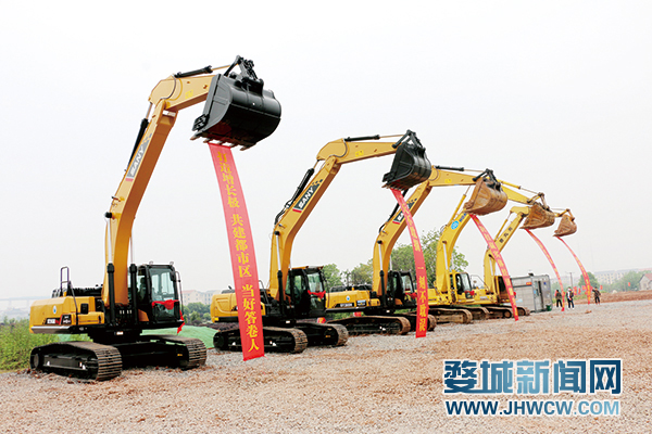 “开工”!随着一声指令,现场机器轰鸣,大型挖掘机挥动铁臂,挖起开工的第一铲土,掀起建设的热潮。