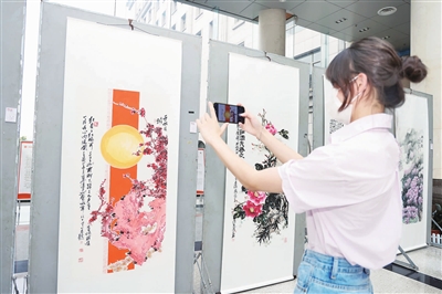 本次作品展共展出书画作品70余件,既有传统绘画的工笔画与写意画,也有融合中国传统文化元素的油画,还有各类书法作品,类别多样、题材丰富、风格鲜明,充分展现了艺术家们爱党爱国、昂扬向上的精神风貌。展览现场,机关干部、文艺爱好者纷纷驻足观赏,时不时拿起手机、相机进行拍照记录。