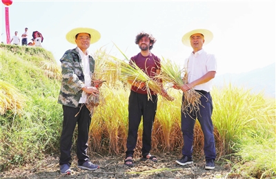 “中国农民丰收节真的太有意思了,这都是农民的智慧。”近日,婺城区塔石乡农民丰收节在塔石岭边梯田拉开序幕,来自突尼斯的几名留学生慕名来到塔石的田间地头,第一次体验割水稻、打稻谷,第一次看舞龙队表演……一睹中国农民丰收节的盛况,尽情体验中国农民丰收的快乐。记者 张红星 文 黄诗媛 摄