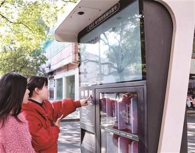 据了解,这处便民服务点由市综合行政执法局设立,在金华市区有十多处这样的便民服务点,是打造“15分钟便民服务圈”的重要一环。记者还留意到,在距离朝阳街便民服务点的不远处,新增了一间小小“书房”,这是由市图书馆打造的“爱阅亭”智慧书屋,在这里,市民可以用读者证或绑定借阅的身份证、市民卡,按照“爱阅亭”机器上的提示扫码完成借阅或归还图书。