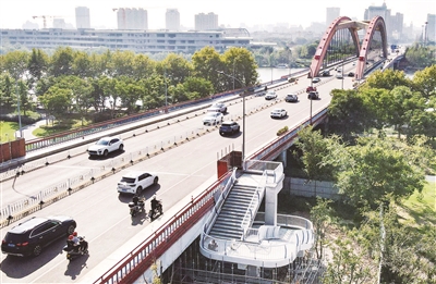 近日,记者在市区双龙大桥看到,铁路文化公园与双龙大桥之间已建好上下梯道(含自行车坡道),以方便行人通行和自行车推行,形成连通铁路文化公园和五百滩公园的慢行交通网络。