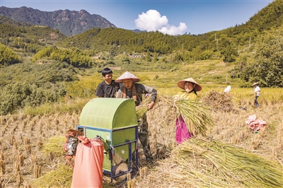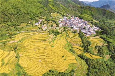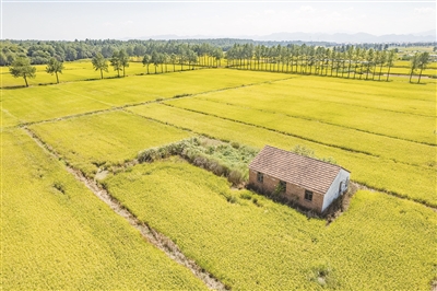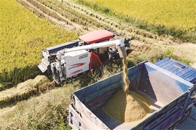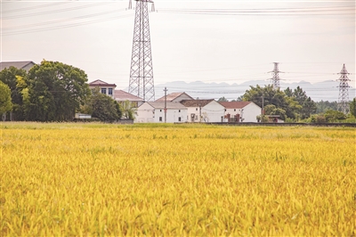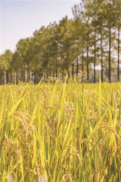 粒粒饱满的谷穗在阳光下泛着金色的光泽