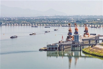 10月13日,俯瞰钱塘江中上游衢江航道(金华港婺城港区罗洋作业区),一艘艘装运各类货物的船舶来回穿梭。据了解,今年1—9月,全市内河港口吞吐量完成332万吨,较去年同期增长20.5%。