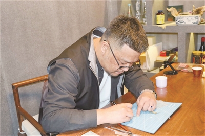 “90后”的黄分回,原是一名药剂师,却对古物文玩怀有深情。2009年在杭州一名收藏家手中初见点翠,他便被那抹幽光击中。“那是一支凤凰发簪,灯下流光溢彩,嵌着红宝石,因稀见而价昂。”那一刻,点翠的华彩在他心中生了根,也让他萌生出学习与传承的念头。