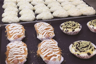 刚出炉的红豆面包松松软软,点缀着奶油玫瑰的花篮小蛋糕好吃好看,裹着一身椰丝的椰蓉面包,凑近就能闻到浓郁的椰香……娴熟的手艺加上货真价实的产品,烘焙店没开多久,就有了一批忠实顾客。