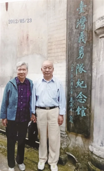 2012年,朱晓枫和丈夫应金华市台办的邀请,作为台湾少年团成员的亲属,再次来到台湾义勇队纪念馆参观、追思,那是她生前最后一次来金华。两位老人紧紧握住彼此的手,在纪念馆门前留下珍贵合影。这里,承载着朱晓枫和母亲共同的抗战岁月,是她难以忘怀的地方。