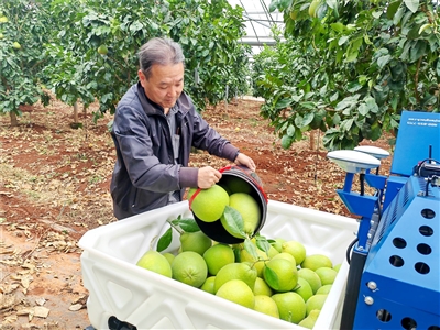 这种“科技增效、生态提质”的种植模式,成效正不断显现。目前,郭建多经营的百余亩生态果园已形成稳定产出:20多亩红宝石青柚亩产超3000斤,亩均产值达4万元;40多亩葡萄柚亩产突破6000斤,亩均产值接近4.8万元;而作为起步产业的“红美人”柑橘,产量与产值也在科技支撑下稳步提升。