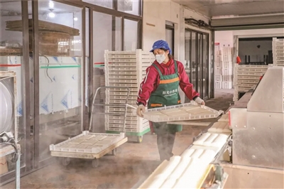 “我们是线上和线下都销售的,销售到拼多多平台和大中型超市,还有菜市场批发部以及各个周边城市。”方根木说,为满足顾客需求,年糕加工厂还提供代加工服务,同时支持杂粮定制加工,“只要是客人带来的原料,我们都会帮忙加工。”