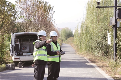 这时,联村干部李震提着备用电池匆匆赶来。“指挥中心联系我,无人机电量要不够了,换块电池以便随时待命。”他一边说,一边等着无人机降落停稳。李震掀开两侧的电池舱盖。我们伸手去帮忙,电池沉甸甸的,勉强能拎起来。李震见状笑着接过:“这电池有15公斤重,拎着有点费劲。”他说,琅琊镇18个村级起降点都配了移动电源充电器,集镇范围还有移动充电车,9分钟就能快充完成,确保无人机可随时应对各种突发情况。