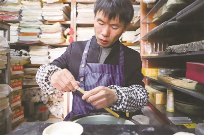 每天早上八时左右,店铺主人陈小高便会准时来到笔庄,开启他与毛笔相伴的一天。古城的早晨游客不多,但他的店里却已渐渐热闹起来。“老板,我想选一支适合写小楷的笔。”“上次在您这儿买的笔很好用,还想再要一支。”“刚开始学书法,该用什么笔合适呢?”……面对顾客的询问,陈小高总是耐心倾听、细致解答,帮助每个人找到最趁手的那支笔。二十多年来,他日复一日地守着这家小店,也守着毛笔制作这门古老的手艺。