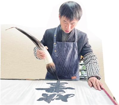2001年,他决定试一试。用攒下的本钱,在古子城开起了“信利笔庄”。“开店没有想象中简单。”陈小高回忆道。起初生意冷清,他便又背起行囊,主动走进金华的学校、书画协会、培训机构,一支一支地推广。“有人拒绝,也有人欢迎,这都正常。好笔,总会有人识。”除了推销,他更潜心钻研书法、国画,琢磨不同字体、画风的用笔特性,从毛笔到宣纸、砚台……凡是与文房相关,他都悉心研究,这样一来,不管顾客有什么需求,陈小高总能给客人最合适的搭配。