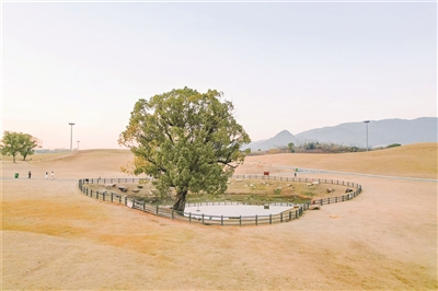 冬日下的尖峰大草坪,褪去青绿、染上金黄,别有一番韵味。市民漫步其间,享受惬意时光。