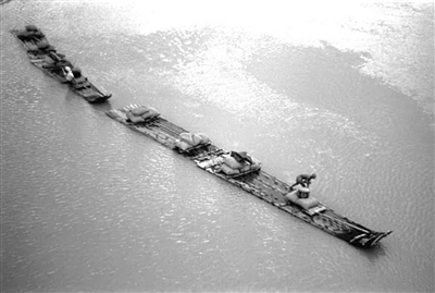 李希霍芬还详细描述了竹筏的样子,看起来很有趣:“这条河上的竹筏都很长,由三节特别的小竹筏组成。前面的一节上翘,后面的两节松松地挂在前面这节上,以便于三节构成一条易于活动的竹筏链。每节竹筏上都有个一英尺(约30厘米)高的平台,上面十分干燥。”