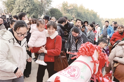 在舞台两侧,独具特色的熊猫猪猪年猪吉市也同样人潮涌动。两头乌包子、烤肠等特色美食,“夹金珠”“套猪头”等趣味游艺,做麻糍、吹糖人、拓年画等民俗活动,唤醒了大家记忆中的年味。