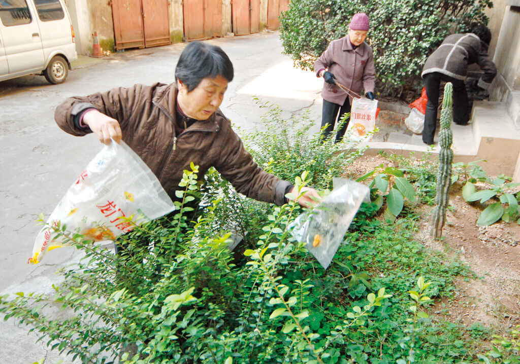 老党员义务劳动忙创卫