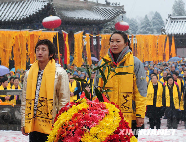 当日,高敏、陈中、邹市明、殷剑、张湘祥等九名奥运冠军来到河南省淮阳县,参加了在这里举行的太昊伏羲公祭大典。新华社记者王颂摄