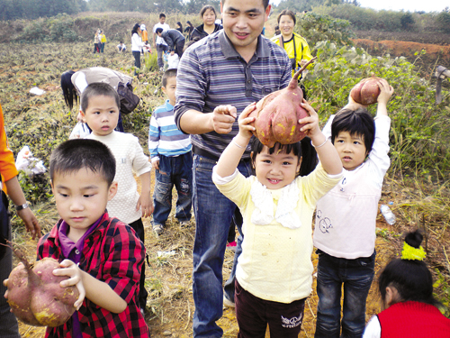 秋高气爽,正是丰收的时节。“羊爸爸”大型农业基地的番薯地里,一群活泼的孩子正在欢快地挥舞着小铲子,寻找着地下的番薯。