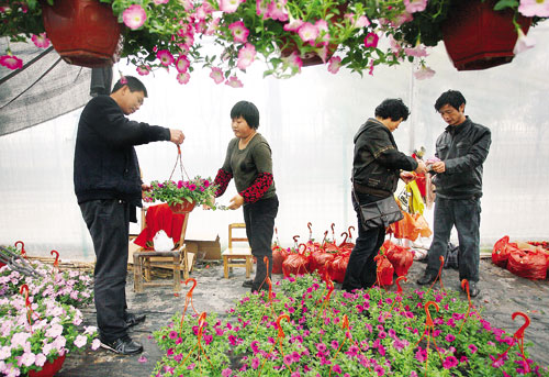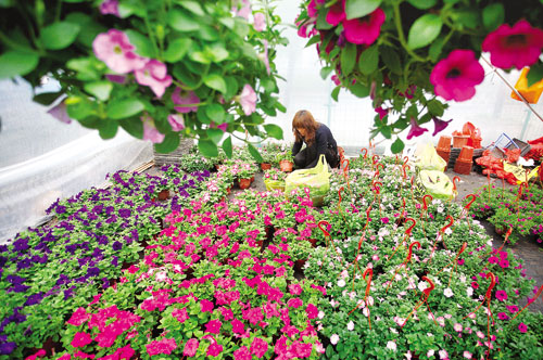 昨天,记者在市区芳科芳溢花卉市场看到,一些正值春季开放的花草进入销售旺期,几家专营花草的摊位已经被各种颜色的矮牵牛、舞春花、倒挂金钟等簇拥得春意盎然。据花主倪竹林介绍,这些花草产自本地,好看而且价格低廉,很受欢迎,主要销往丽水、衢州、江西等地。