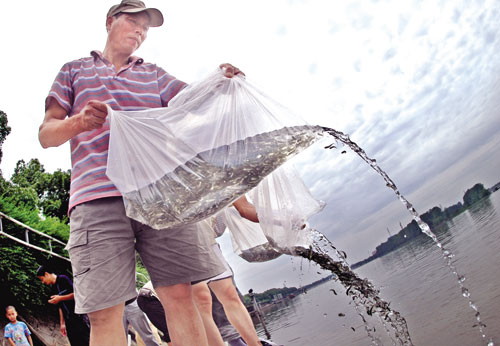 日前,市渔政管理处又在婺江人工湖投放了200万尾适合本地水环境的草鱼、鲢鱼、鲫鱼等优良土著鱼苗。这有利于丰富婺江渔业资源,进一步提高江溪自净能力,改善江水生态环境。据悉,作为省级项目,《市本级渔业资源增殖放流》在我市实施以来取得了一定效果。根据项目计划,年底前还将在我市的沙畈水库、金兰水库、安地水库等增殖放流洁水性鱼类,提高水库洁水保水能力,优化水源水库的水质。