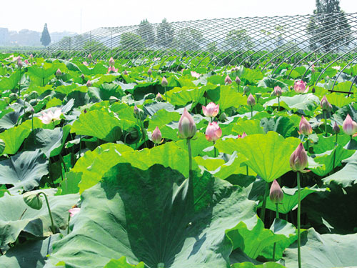 接天莲叶无穷碧,映日荷花别样红。昨日,记者在白龙桥周家村的基能农庄里看到,10多亩的荷花塘里,含苞待放的荷花美丽动人,一个个嫩绿的莲蓬在荷叶间摇摆。农庄里,工人们正忙着对莲蓬进行分类。农庄负责人张基能告诉记者,上市一个月来,已经采摘了上万只莲蓬,批发到福泰隆超市、白龙桥菜场等处,个大籽甜的莲蓬非常畅销。