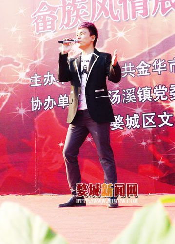 在欢快的畲族歌声中,身着民族服饰的畲族女子从舞台两边飞奔而出,演绎了一曲畲族舞蹈《欢腾畲乡》,拉开了整场演出的序幕。歌舞表演通过青年们在生产中互助、生活中嬉戏的动作,体现了畲乡翻天覆地的变化,演绎着现实中,纯朴的畲乡人民用自己的勤劳和智慧浇灌着幸福和谐生活的画面。