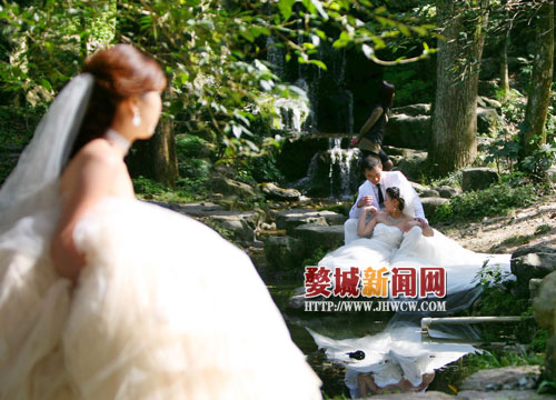 昨日,记者在双龙风景区内看到,初冬暖阳,吸引着数十对新婚伴侣在景区内拍摄婚纱照。洁白婚纱衬托出新娘的如花笑靥,冬日暖阳照出新郎的幸福笑容,上演着一幕幕动人的“冬季恋歌”。