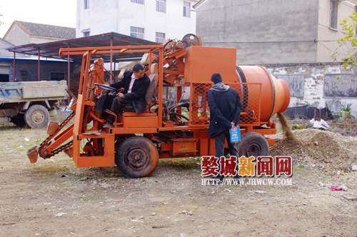 去年,范柏华在成功自制出剪叉式电动汽车升降平台后,近日,又成功自制出了新型、实用的行走式自动进料混凝土搅拌机,消息在汤溪一带不胫而走。