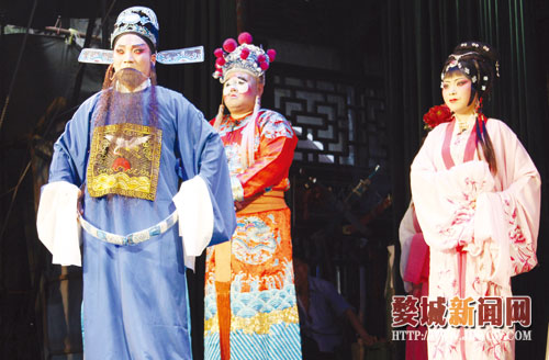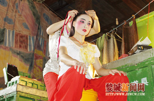 在后台,一位小伙子盯着正在化妆的演员良久。“你是戏迷吗?”“是!”这位17岁的小伙子名叫祝凯,他说自己从小便跟着爷爷奶奶到处看戏,十分入迷,只要附近哪里有唱戏的他一定会跑去看。“千秋令我看了4遍,很多段子也会唱,觉得在台上唱戏很是威风,尤其是大花脸,”祝凯说,自己学习成绩不好,早早地辍学了,自己的梦想便是以后能跟着剧团到处唱戏,所以现在除了跟电视里学,哪儿搭台唱戏自己是非去不可的。