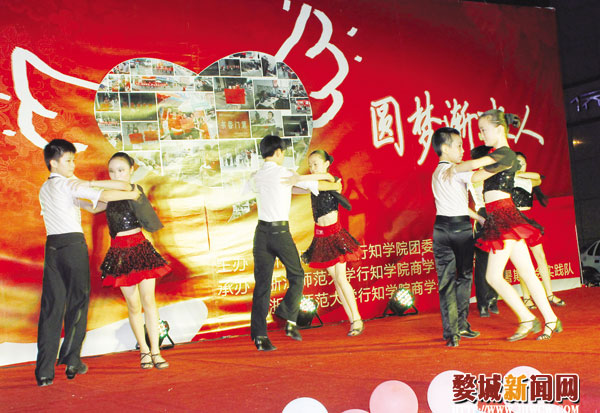 爱心晚会有16个节目,大多是浙师大行知学院社团的表演,但还有4个节目是社会人士自愿参与的,社团的舞台剧、小朋友的拉丁舞以及社会人士的亲情献唱,让整场晚会显得流光溢彩、与众不同。