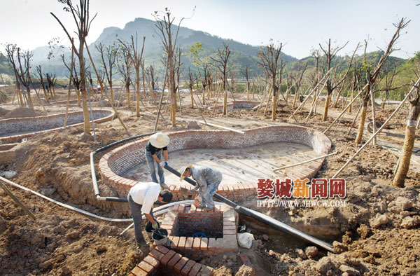自今年6月份勘探队从九峰山下挖出第一口温泉以来,金西九峰温泉项目的开发进展就得到了各界的广泛关注。日前,记者在金西开发区九峰温泉体验馆项目工地现场看到,项目工地的道路施工和部分植被的种植已完成,温泉池按设计图纸的规划错落有致地分布。据悉,当前已完成进水、排水系统的安装,即将完成电缆线路的配置。