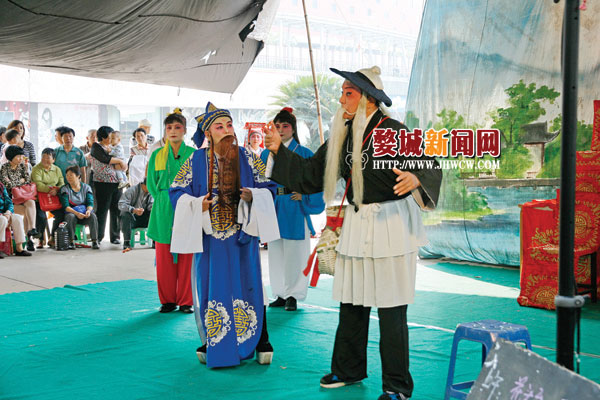 近日,金华市“夕阳红”婺剧团在市人民广场表演了几出经典婺剧剧目。据“夕阳红”婺剧团方团长介绍,平时剧团经常会下乡演出,这次是为了庆祝剧团成立11周年自发组织的一场表演,吸引了一大批爱好婺剧的市民们观看。
