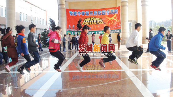 近日,婺城中学举行了第三届科技文化艺术周暨第三届校园吉尼斯挑战赛活动。这次挑战赛分别举行了排球个人垫球、立定跳远、个人1分钟连续跳绳、10人集体跳绳四个项目的比赛。