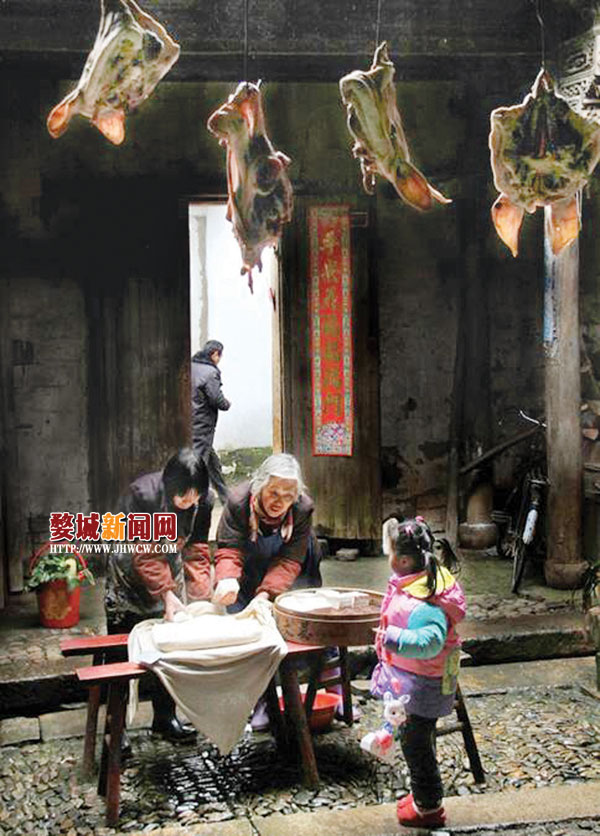 这张照片是腊月期间,农村里家家户户买了腊肉挂起来,等着儿女子孙回家过年。每到年底,这户人家我都会去好多次,看看她们有没有在干什么活儿。有一次终于被我碰到了,大家都回来了,奶奶非常开心,准备做盐卤豆腐。我当时赶忙回家拿相机,然后等着她们开做,等了一个下午终于拍到许多照片,非常开心。这种场景在以后会非常少,我这几年拍下来的感觉就是农村越来越淡化了过年的气氛,许多子女都把父母接到城里过年,到饭店吃一顿年夜饭,回家过年的一年比一年少,但是农村过年的感觉与城里真的是天壤之别,特别热闹喜庆,这种场面看着就觉得温馨。