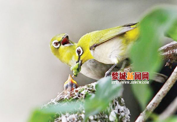 动物的感情其实很丰富,它们有很多心理,这是鸟雀喂食的情景,我观察了很长时间,这个母爱非常伟大。母亲在小雏鸟长大后要带它学飞,它们用虫子来引诱孩子,父亲母亲基本是15分钟给孩子找虫子喂食一次,每次都会在边上先观察几分钟,一开始每次都喂到小鸟嘴里,不断重复,让小鸟心稳了之后开始不喂到它嘴边,而是引诱它自己飞起来啄食,一次又一次,鼓励小雏鸟煽动翅膀,努力飞翔。