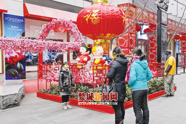 在元旦这个万象更新的节日里,记者走访江北市中心,记录市民们的喜悦。虽说现在正值“二九”时节,但阵阵寒意仍然挡不住市民们的热情。街头随处可见七彩的气球、大红的灯笼,市民们多是一家出行,大人小孩脸上都挂着笑容,各大商场人流如织。西市街上的“桃花门”与四个喜庆的“福娃”备受宠爱,来往的行人纷纷合影。