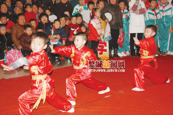 上月29日,金华市伏羲武馆的小学员们来到了莘畈小学,与这里的山区孩子一起共进午餐,一起表演节目,共同迎接新年的到来。武馆专门为山区孩子带来了书包、球拍、篮球等新年礼物,小学员们为他们表演了精彩的“中国功夫”。而莘畈孩子们的热情、懂事也让这群城里孩子受益不少。据了解,伏羲武馆的教练们已经多次来到莘畈小学开展支教活动。
