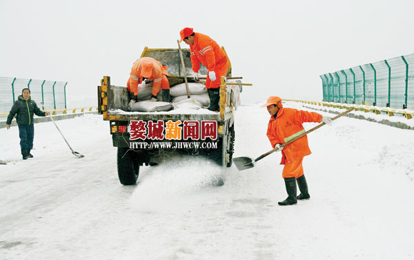 1月5日凌晨6点,婺城区交通局20多位工作人员来到白龙桥至琅琊路段桥面,解决桥面出现的结冰现象,铲冰除雪、撒盐融冰,经过几个小时的紧张忙碌,桥面上的冰雪全部铲除完毕,结冰路段恢复正常通行。