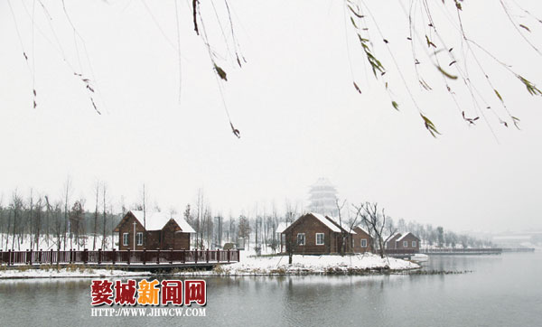 湖雪细柳春未至 山寺飞白待人来