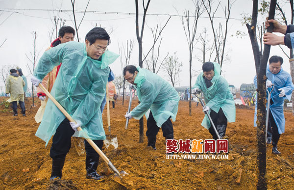 1月29日,农历正月初七,是市、区机关部门上班第一天,为了给新一年的工作播种下新的希望,市委书记陈一新,市委副书记、市长徐加爱,婺城区委书记陈晓,区委副书记、区长王健与500多名市、区机关干部来到金西开发区峙垅湖公园植树播绿,开启新一年的工作。