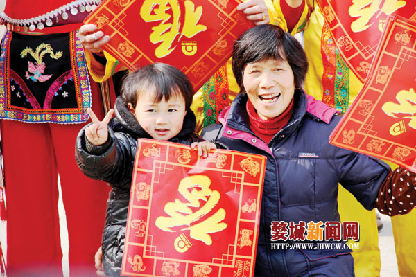 1月23日下午,婺城区老干部摄影协会带了500张福字和200份年历来到汤溪镇鸽坞塔村为村民送福字,送年历,拍摄全村福。随后,婺城区老干部摄影协会和汤溪老年大学书画班9位书画家现场为村民写福字,创作春联,书画家们经过三个小时的挥毫泼墨创作了四五百幅作品送给鸽坞塔村民。