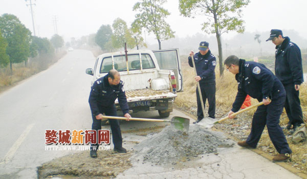 最近,双龙行政执法分局机动中队执法队员在日常巡查时发现,迎宾西路麻车村路段一处路面出现了破损,形成一个约1.5平方米的大坑。由于此处正好处于整条道路的低凹处,破损位置很难及时被过往车辆发现,而且一旦有积水,行人也容易踩空摔倒。为此,1月16日,该中队执法队员自掏“腰包”,买来砂石和水泥,义务修补了该破损路面。据悉,这已经是最近一年以来,该中队执法队员第四次义务修补辖区道路的破损路面了。