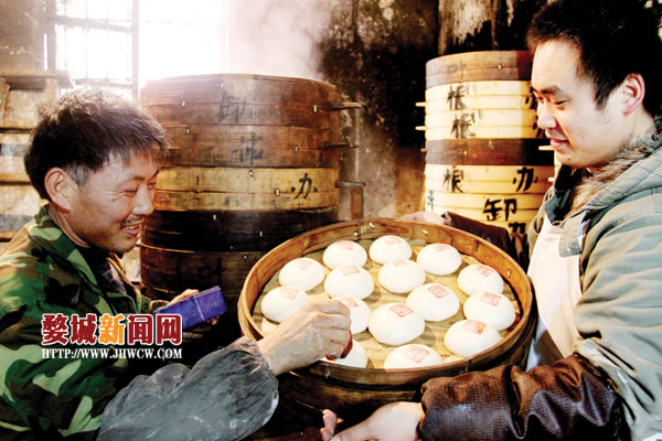 随着春节脚步的临近,村民们开始采购馒头,也有不少村民会到就近的馒头店定做馒头。日前,记者在罗埠镇林家馒头店看到,师傅们正在忙着做馒头。据老板介绍,过年用的馒头预订非常火热,有一些老主顾会提前打招呼,要预定馒头,他们会集中到节前两三天来取馒头,现在销量三、四千只,年前那两天的销量在一万只左右。