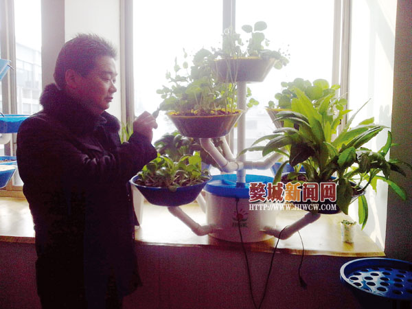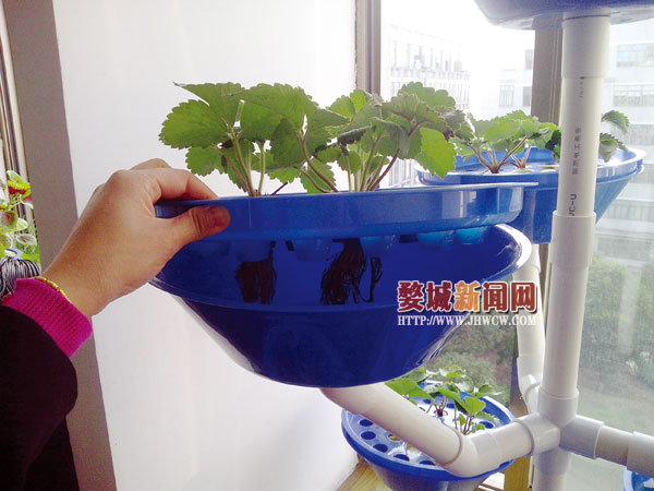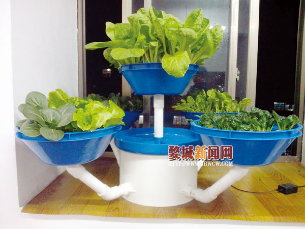 陈明红介绍,这种家庭自动种菜装置主要部件是一些食品安全级的PP管、种植盆,以及一个自动化循环装置,这种设备通过搭建2~8层的食品级PP管、种植盆,达到立体种植,少占地多产出的目的。标准配置为3层,占地0.8~1.2平方米,并可根据楼层高度增加栽种层放在家中的室内、阳台和飘窗上。每层90~120个种植孔,一套标准配置是330个种植孔。同时,他又把它们按培育方法的不同分为基质型、水培型和雾培型三大类,其中基质型类似无土栽培,把一些基质放在各个塑料盆里,然后让作物吸收养分让其生长起来。而水培型主要通过自动循环装置给根部喷水和营养液,使各种植物生长。而雾培型主要是采用水雾化为作物提供营养和水分,促其生长。