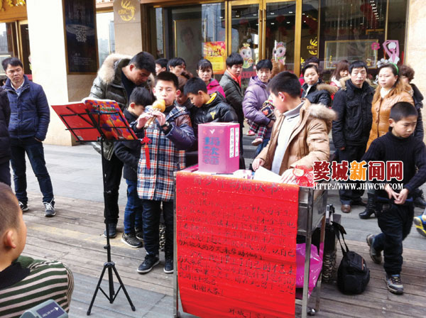 正月初七下午,年味正浓的时候,四个小伙伴带上事先写好的“圆梦行动倡认书”、募捐箱、乐器、手工纸花、红色的小纸条等来到市区恒大百货门前开始了圆梦行动。葫芦丝、小提琴都是他们的拿手乐器,一演奏便吸引了无数人围观,许多市民纷纷掏出口袋里的钱,支持他们的圆梦行动。小伙伴们为了表示自己的感谢,给每一位捐款的人赠送手工的花朵或是在红色纸条上写上自己诚挚的感谢。活动结束以后,小伙伴们一共募集了1178.5元,他们拿出其中的135元买了一个店里最好的遥控赛车,他们希望民工子弟学校的那位同学在收到这份礼物之后能开心,而余下的这笔钱他们也会捐给需要帮助的人。