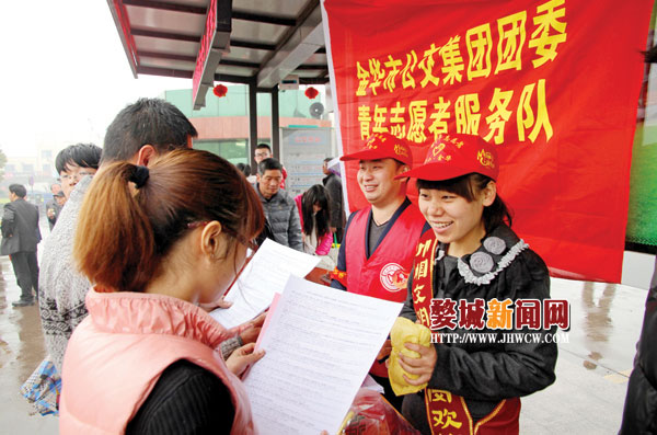 近日,金华公交集团团员青年志愿者在汽车东站、火车西站开展了为期三天的学雷锋志愿服务活动。提供的服务内容包括导乘指南、解答问询、零钞兑换、地图引路、帮提行李、防盗宣传等。