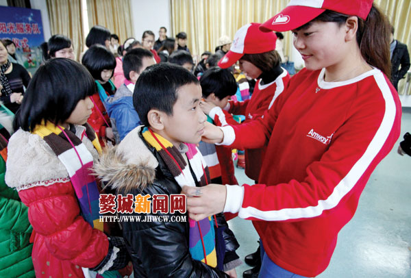 春意料峭,寒意袭人的时节,3月1日,金华市妇联、婺城区妇联、安利金华分公司等单位负责人,来到塔石小学看望“春蕾班”的学生,给孩子送来了围巾、手套和学习用品,并帮助解决学生开展活动没有音响设备问题,给学校送来一套音响设备,如雪中送炭般及时,给山区的孩子送来了温暖。之后,安利金华分公司的志愿者们与孩子们开展互动活动,组织孩子们进行校内、外知识,食品安全知识的培训。