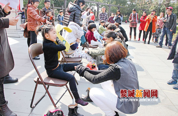 近日,由婺城区妇联、城东街道党工委、办事处主办的“展巾帼风采,建和谐家庭”亲子互动活动在八咏公园举行。青春路、八咏楼、旌孝街等五个社区的家庭代表参加了穿衣服、系鞋带、智力拼图等活动,现场欢笑声不断。